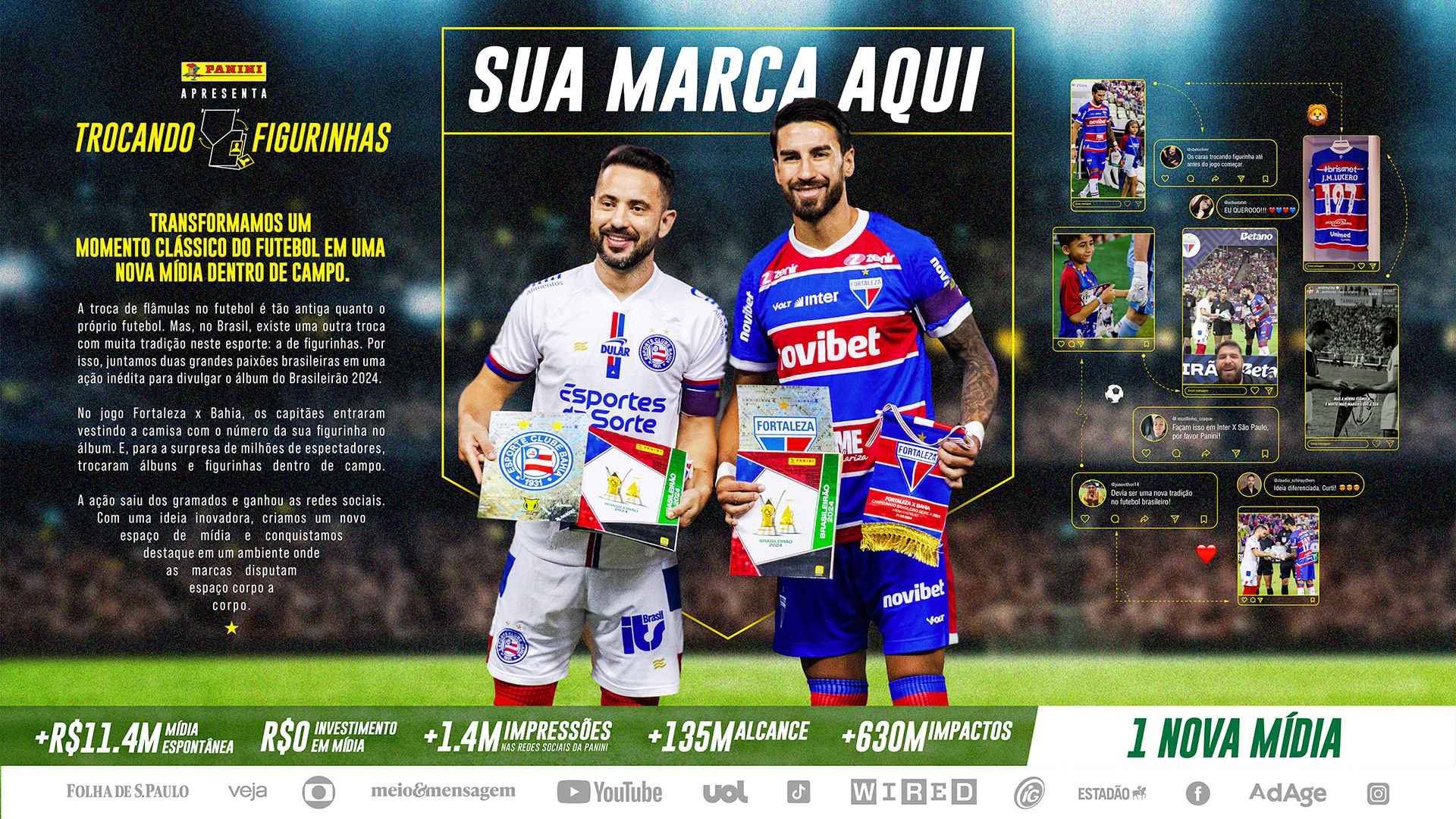 Criamos um novo espaço de exposição de marca dentro de campo, nos apropriando de um momento tradicional do futebol para divulgar o álbum de figurinhas do Brasileirão de maneira inédita.